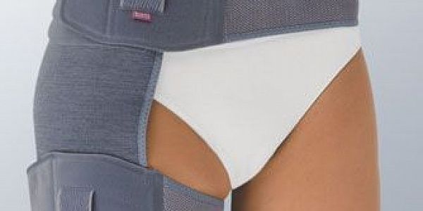 Компрессионный бандаж на тазобедренный сустав в раннем послеоперационном периоде. Данное изделие не дает возможности регулировать степень фиксации, однако снимает нагрузку с тазобедренного сустава и надежно защищает его. За счет компрессии ортез medi orthocox уменьшает отеки, а дышащая гипоаллергенная ткань изделия делает комфортным его длительное использование.