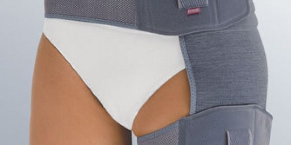 Компрессионный бандаж на тазобедренный сустав в раннем послеоперационном периоде. Данное изделие не дает возможности регулировать степень фиксации, однако снимает нагрузку с тазобедренного сустава и надежно защищает его. За счет компрессии ортез medi orthocox уменьшает отеки, а дышащая гипоаллергенная ткань изделия делает комфортным его длительное использование.