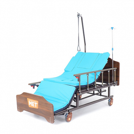 Кровать медицинская функциональная механическая Мet с туалетным устройством Remeks (ручки управления справа)